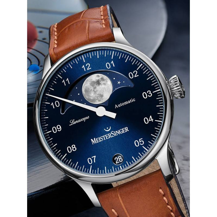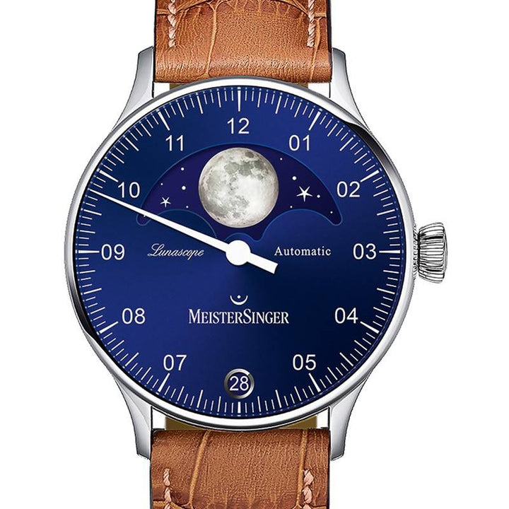La Montre Stratoscope de MeisterSinger est un modèle horloger haut de gamme avec un concept de phase de lune précis qui n'a besoin d'un petit réglage tous les 122 ans.