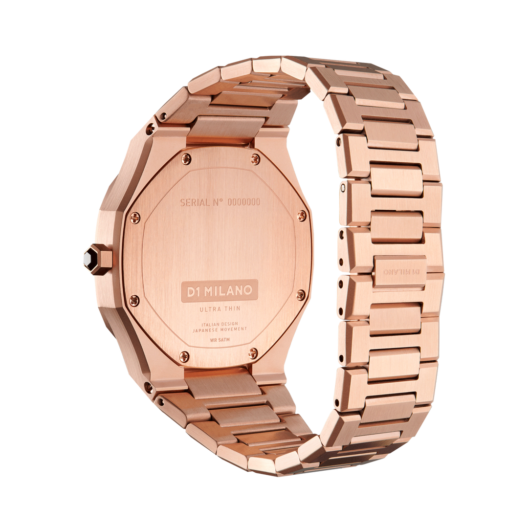 La Montre D1 Milano Ultra Thin Rose Night UTBL06 de la collection Ultra Thin est une montre féminine et moderne. Son design unique et sa finition en acier inoxydable revêtu de PVD rose lui confèrent un aspect élégant.