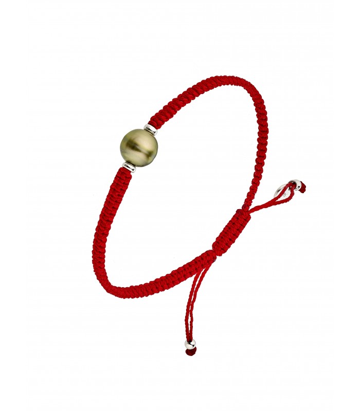 Bracelet 1 Perle De Tahiti Cerclee 8/10 Mm Sur Coton Cire Qualite A 1 Gr (MACRAME.GY1P-AGT)